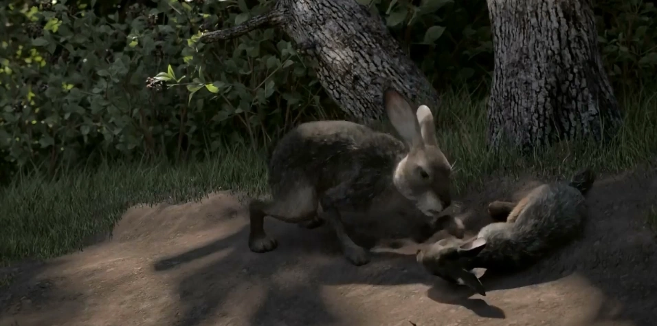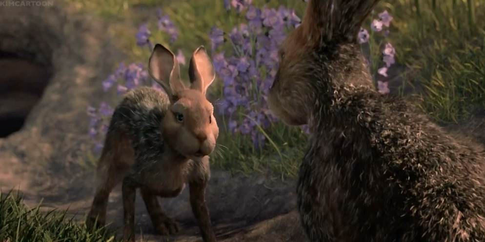 Hazel is seen coming out of a bush before telling Fiver it's safe and he can come out. Fiver says there's still something strange about the warren, Hazel asks if it's dangerous but Fiver replies saying doesn't know. After Toadflax stops Fiver from eating, saying Cowslip are for Owsla. Hazel expresses his anger towards the rule. Fiver is seen playfully jumping over Hazel while he eats leaves. Hazel tells Fiver it's getting dark and they have to return to the warren, Fiver disagrees, saying the danger will come there too and how it's all around them.