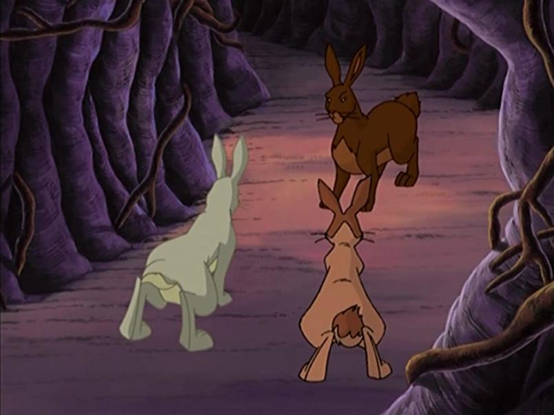 In Kidnapped, Moss is seen on a Wide Patrol led by Vervain. He advises Vervain to try following Kehaar back to the outsiders' warren, but Vervain points out that they've tried that already. Then another of the Owsla, a buck named Larch, collapses from exhaustion. When Moss reports this, Vervain decides to leave Larch behind. Later, the patrol sees Campion meeting with Hazel, Fiver, Bigwig, Primrose, and Pipkin, and unsuccessfully attempt to capture them. Moss is present when Vervain reports these events to Woundwort, and he is part of the false ambush Woundwort organizes in an attempt to trick the outsiders. At the end of the episode, Vervain, Moss, and another unnamed Efrafan capture Pipkin.