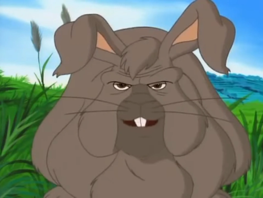 Raincloud is a secretive rabbit. Although he is greedy and tells fibs, he is not entirely evil, and panics after unintentionally causing Pipkin to try and jump from a cliff.